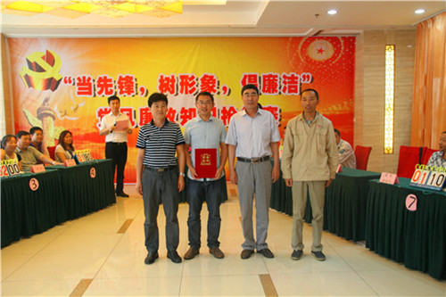 6月30日,公司在淮鹽大酒店一樓大廳舉辦了“當(dāng)先鋒,樹(shù)形象,倡廉潔”為主題的黨風(fēng)廉政知識(shí)搶答賽。公司領(lǐng)導(dǎo)及機(jī)關(guān)、淮鹽、農(nóng)場(chǎng)、市場(chǎng)全體黨員干部觀看了比賽。