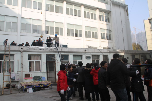 公司承擔集團公司ERP項目機房電纜工程,工期較緊。該工程電纜系低壓五芯電力電纜(240*3+120*2),總長230米,重近3噸。施工現(xiàn)場又處于金橋新村小區(qū)內,全靠人力施工,需要施工人員較多;而公司工程部和供電所工作人員大都正在忙于其它電力工程,能抽調的人員非常有限。為不誤工期,轉變工作作風,公司在領導班子親自帶隊,機關工作人員全體出動,齊心協(xié)力,拖、拉、拽、送,敷設電纜上墻,并吊送到位于五樓的ERP項目機房。
