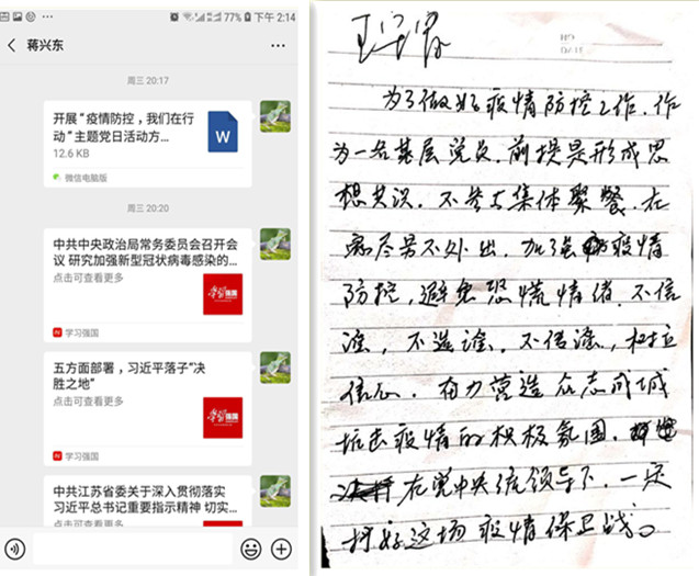 為了引導(dǎo)黨員統(tǒng)一思想認(rèn)識,凝聚思想共識,激發(fā)黨員做好疫情防控工作的思想自覺和行動自覺。2月12日,臺南供電所通過微信方式組織開展了“疫情防控,我們在行動”主題黨日活動。在微信平臺上,黨員們共同學(xué)習(xí)了《中共中央政治局常務(wù)委員會召開會議研究新型冠狀病毒感染的肺炎疫情防控工作 》、《五方面部署,習(xí)近平落子“決勝之地”》、《江蘇省委常委會召開會議進一步把疫情防控工作做實做細做到位》重要指示精神;同時,開展了“我為疫情防控出份力”活動,全體黨員暢談疫情防控體會和做法。黨員王守富在活動中表示,作為一名基層黨員,前提是形成思想共識,不參與集體聚餐,在家盡量不外出,不信謠、不傳謠,樹立信心奮力營造眾志成城抗擊疫情的積極氛圍,在黨中央統(tǒng)一領(lǐng)導(dǎo)下,一定能打好疫情防控保衛(wèi)戰(zhàn)。(劉繼美)